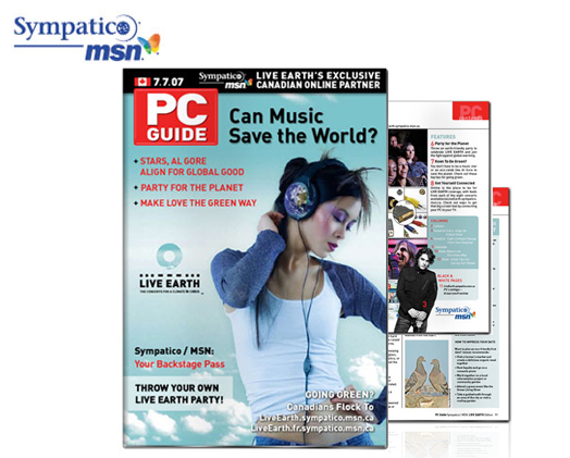 As a major partner in the Live Earth initiative, MSN — and its Canadian online partner, Sympatico — wished to spread awareness via a limited edition booklet that promotes the event and provides information on global warming. The Ad Company was contracted with this intriguing project and has produced this multi-spread magazine.